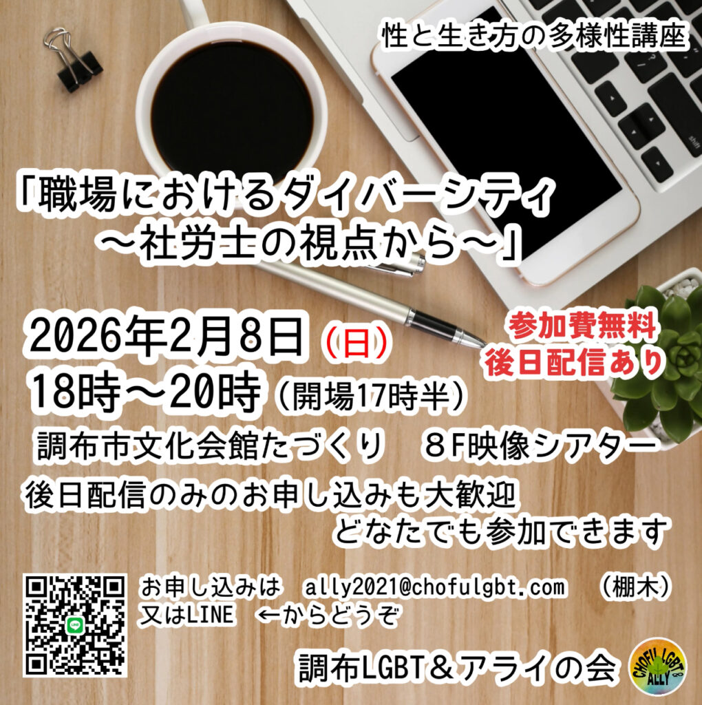 【職場におけるダイバーシティ~社労士の視点から~】2月の講座 2026/2/8